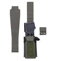 Each pouch will come with a removable Velcro flap and a bungee pull-tab kit. These accessories can be used to retain smaller items (small multitools, single-stack 1911 magazines, etc.) and to provide additional over-the-top retention. The pouch will securely hold a magazine without additional coverage/retention from these.